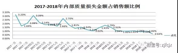 內(nèi)部質(zhì)量損失占銷售額比例, 從2年統(tǒng)計數(shù)據(jù)看,呈現(xiàn)持續(xù)的下降趨勢。